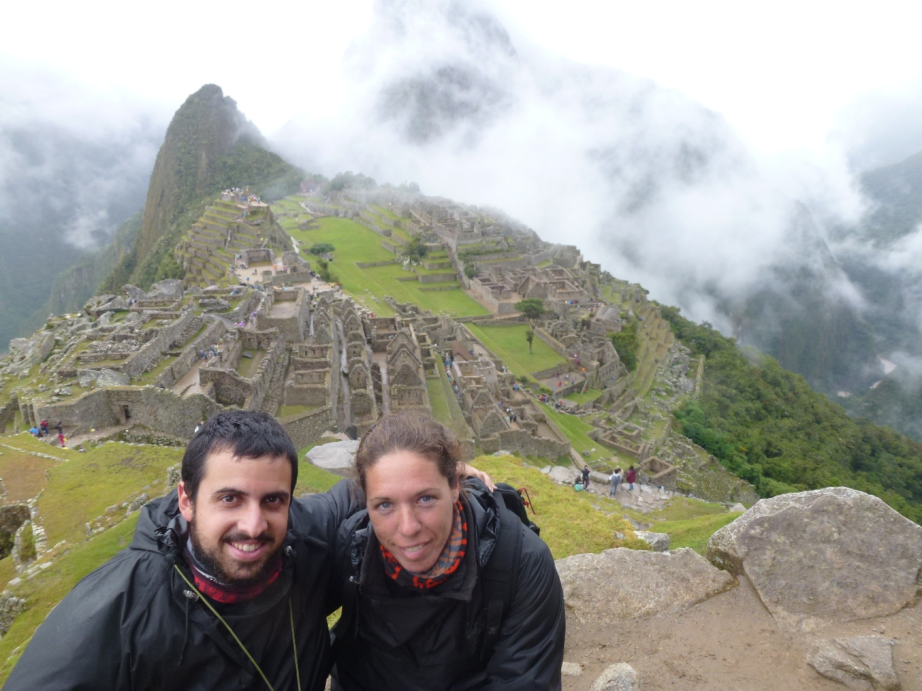 El nostre destí principal a Perú i un dels punts forts del viatge, era el Machu Picchu, així que vam optar per allotjar-nos a Ollantaytambo, on s’hi troba una de les parades de tren per anar fins a Aguas Calientes. A partir d’aquí només hi ha dues opcions per pujar fins a Machu Picchu, la primera és pagar un minibús que escala per un camí d’interminables corbes o l’altre és pujar a peu els gairebé 2.000 esglaons tallats en pedra que separen el poble de les runes inques. Tenint en compte que havíem agafar el tren a les 5 h del matí, i que quan vam arribar a Aguas Calientes estava plovent, vam optar per la primera opció, contractant l’única companyia autoritzada per fer aquest tram de recorregut i arribar el més aviat possible al